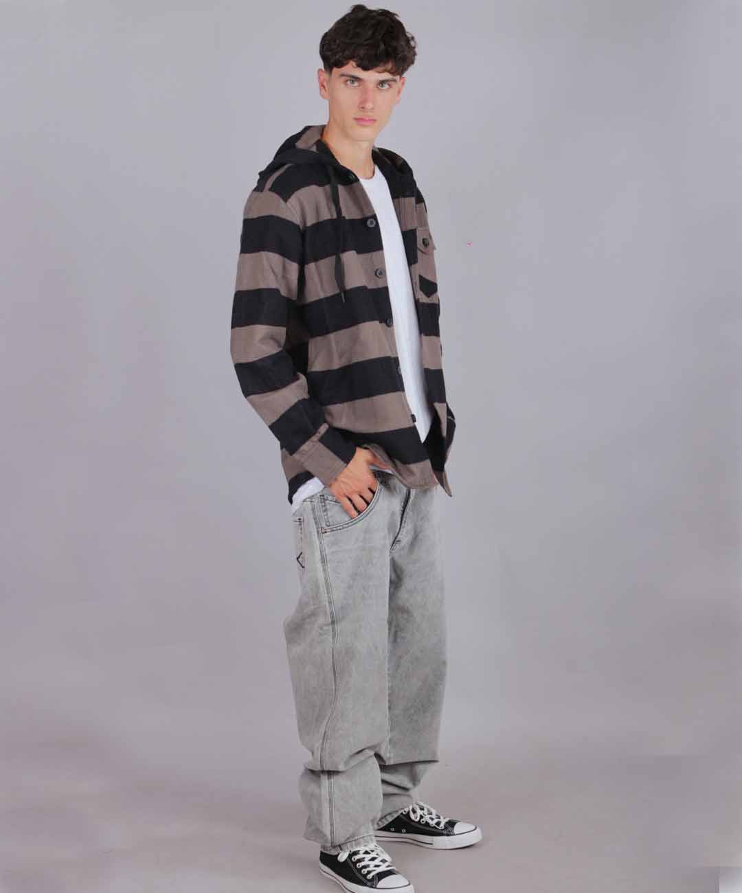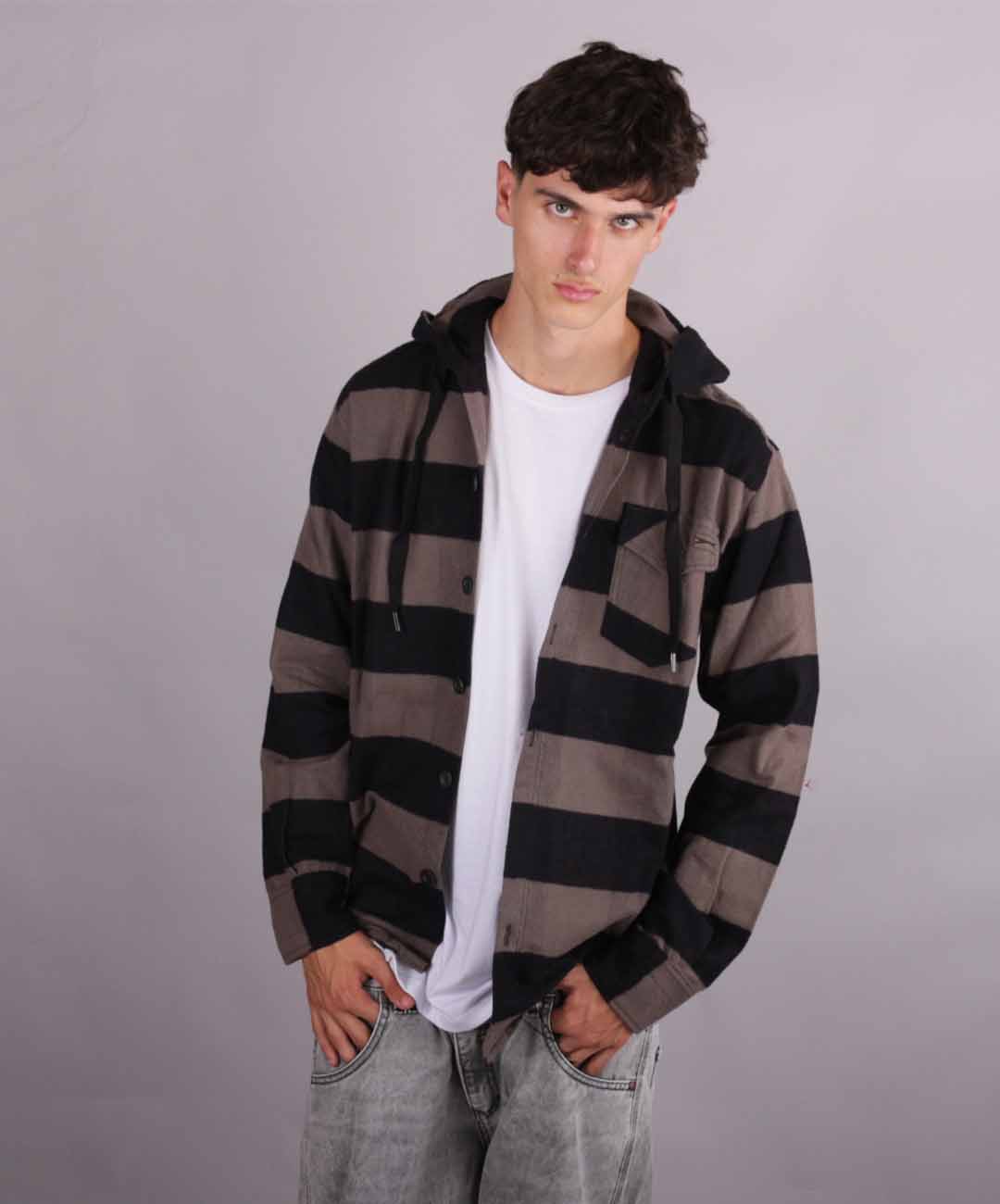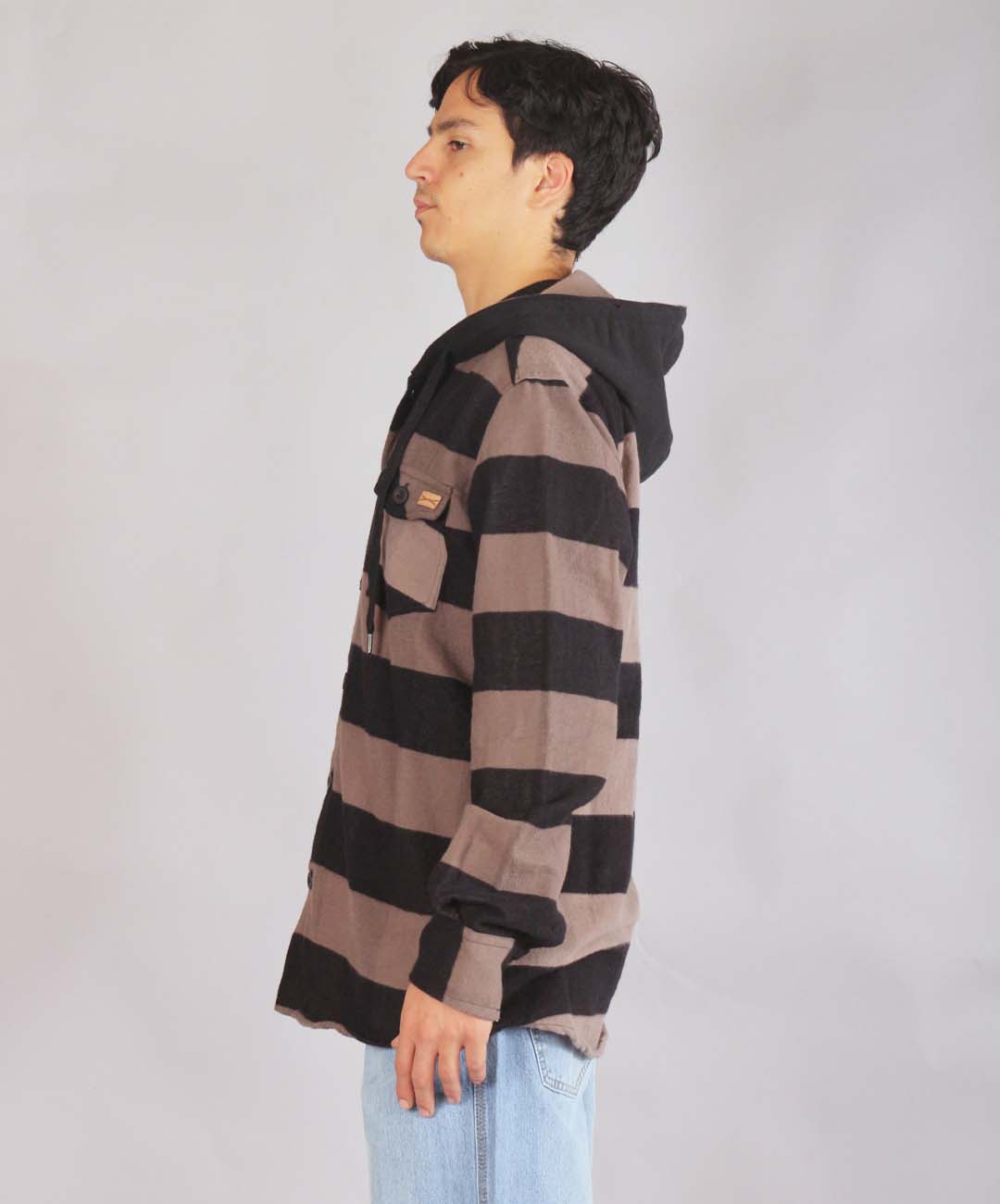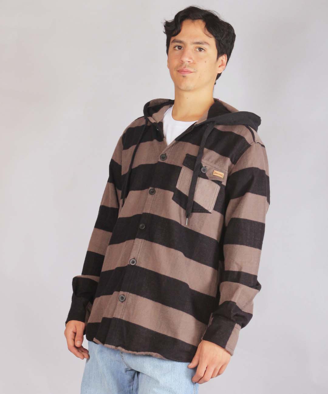 Camisa Leñadora Con Capucha Negro/Beige Producto Original
