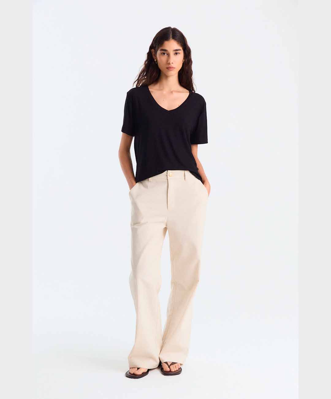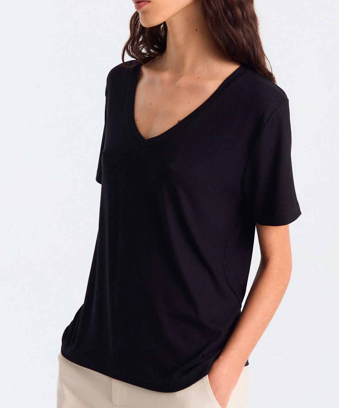 Remera basica manga corta de morley viscosa, escote V Uma.